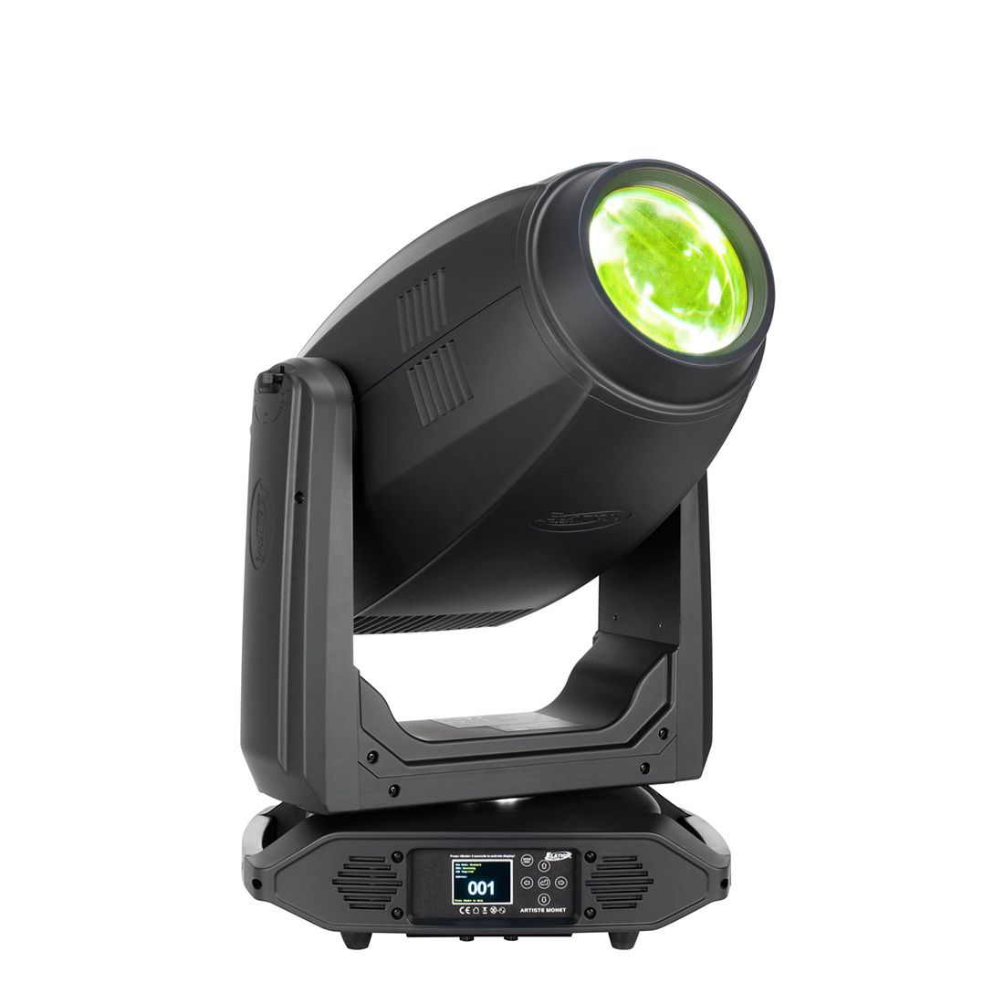 prisme, frost, iris, fréquence LED ajustable, focus, autofocus max 1000 W, poids 42,6 Kg, 40/67 canaux dmx.