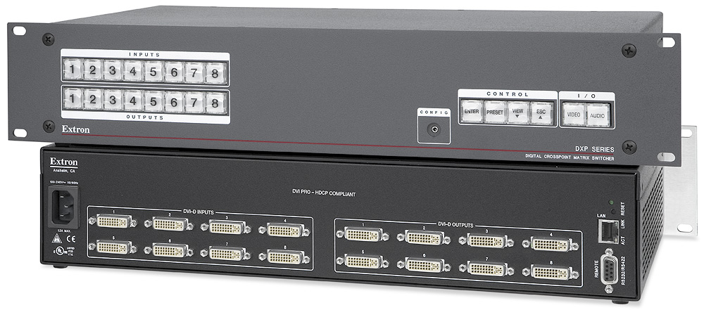 8 x 8 avec Key minder et EDID minder, reclockage automatique en sortie.