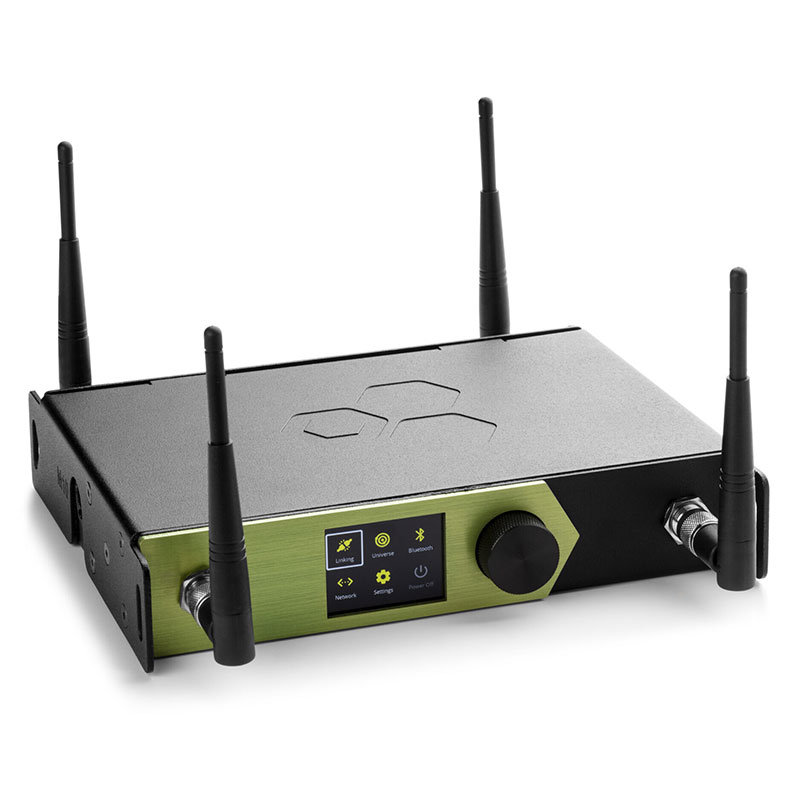 Le WiFi embarqué peut recevoir en sACN et Art-Net, tandis que l’interface Bluetooth permet la configuration via l’application CRMX Toolbox et le streaming DMX.