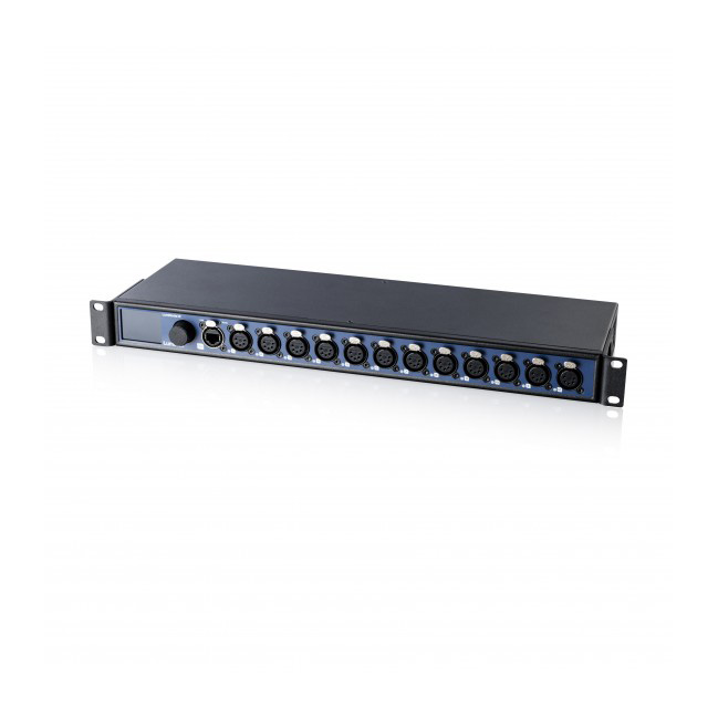 Le LumiNode 12 est le node offrant la plus grande densité de ports DMX/RDM du marché. Ses 12 ports et ses 16 moteurs de traitement, son format rack 19", son afficheur LCD et sa molette de réglage en font le node idéal pour les shows de grande envergure.