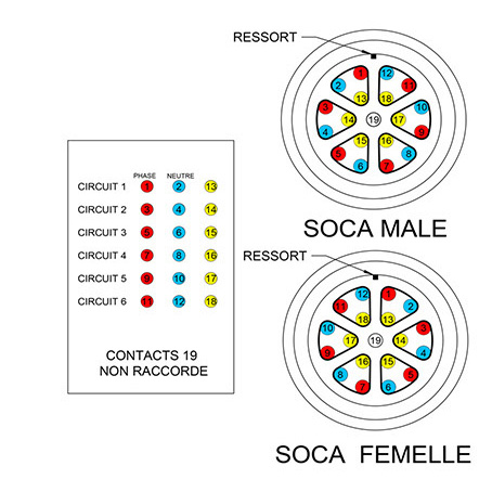 Entrée sur P16 125A 5G50, 4 sorties SOCAPEX 416 6 circuits terre indépendante